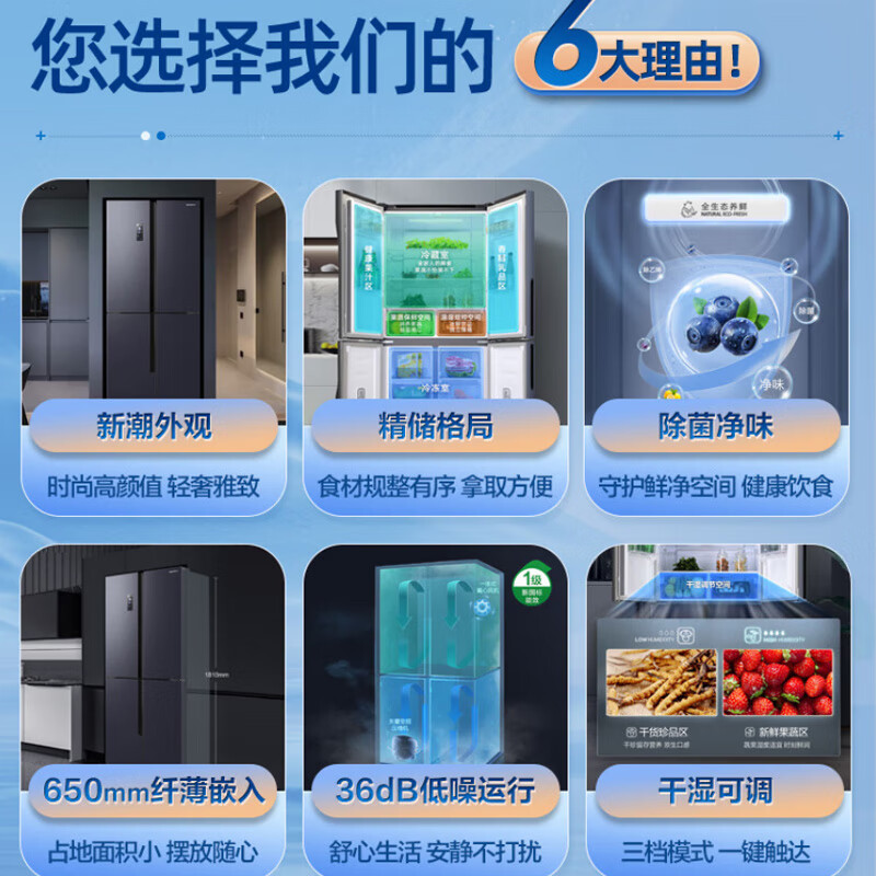 5、冰箱收到了,制冷超快,外形好看,保鲜效果很好,容量超大又静音,物流快太度又好,还特别叮嘱放几个小时才插电,直得入手