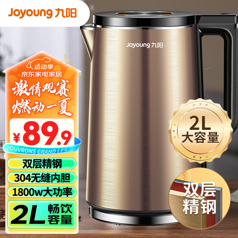 九阳(Joyoung)热水壶烧水壶电水壶2L 内外双钢 一体无缝内胆 快速沸腾 超大容量 家用开水壶K20FD-W180价格:99.90元!