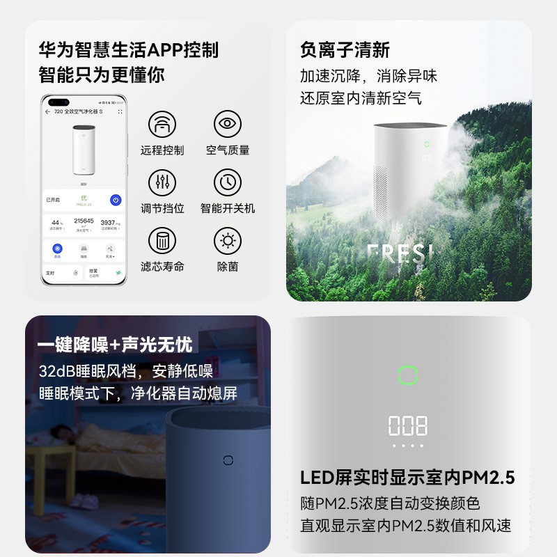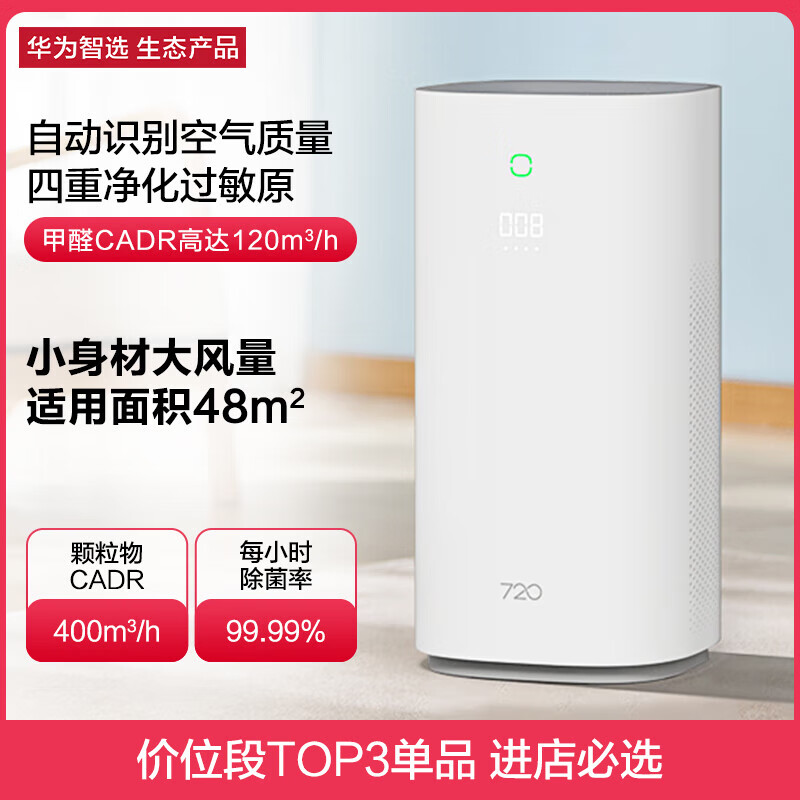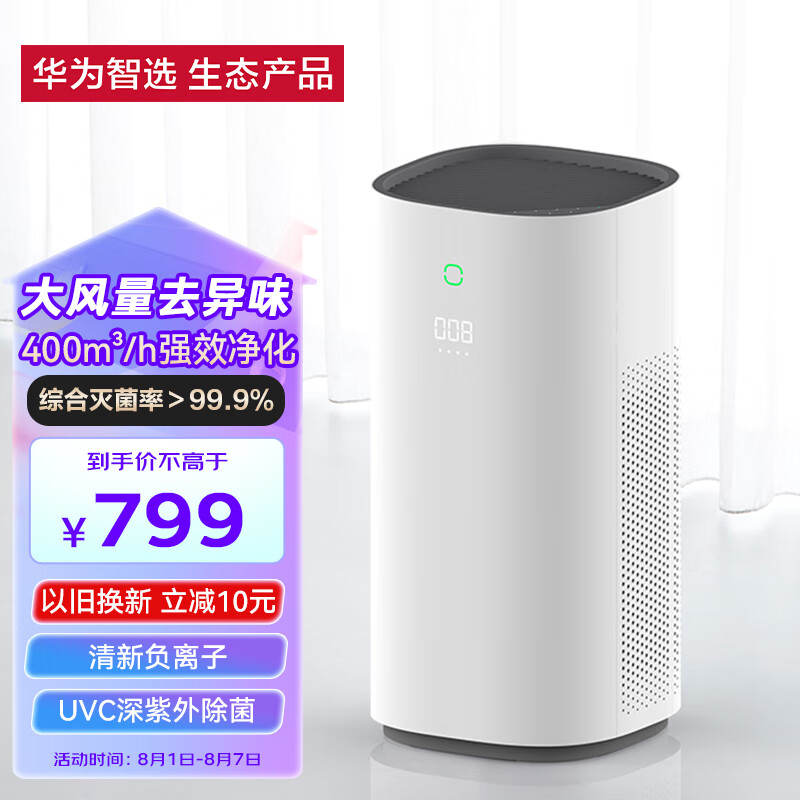 华为智选720空气净化器 C400 家用除甲醛除菌过敏原 除宠物异味烟味吸猫毛 除雾霾PM2.5 深紫外线灭菌价格:749.00元!