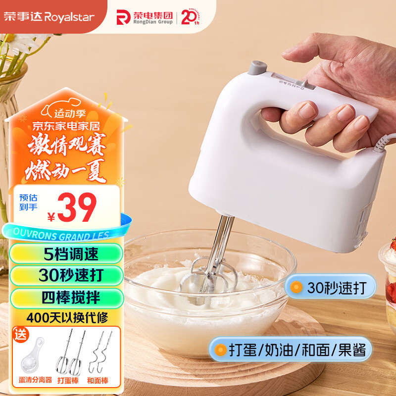 荣事达(Royalstar)打蛋器 家用电动打蛋机奶油打发器烘焙搅拌器手持自动蛋清搅蛋器EGK132L价格:39.90元!