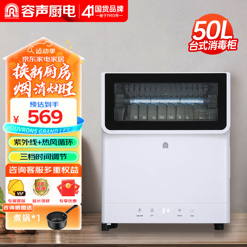 容声(RONGSHENG)消毒柜家用 小型消毒碗柜 高温立式台式碗柜 二紫外线热风循环立式消毒柜50-A60价格:569.00元!