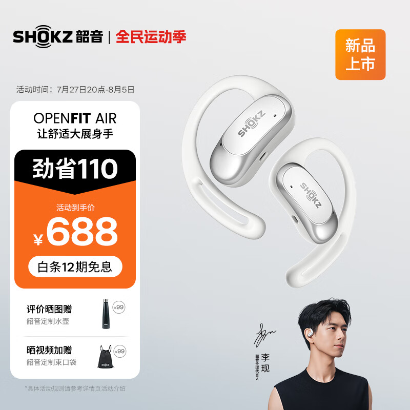韶音(SHOKZ)【七夕礼物】OpenFit Air T511开放式蓝牙耳机不入耳非骨传导运动跑步长续航通话降噪适用苹果华为 冰川白价格:688.00元!