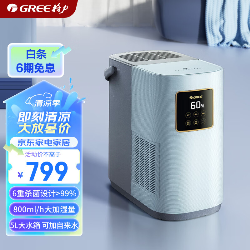 格力(GREE)无雾加湿器婴儿 热蒸发空气加湿卧室800ml/h智能恒湿 五重净滤 办公室客厅母婴5L大容量50x80bpro价格:799.00元!