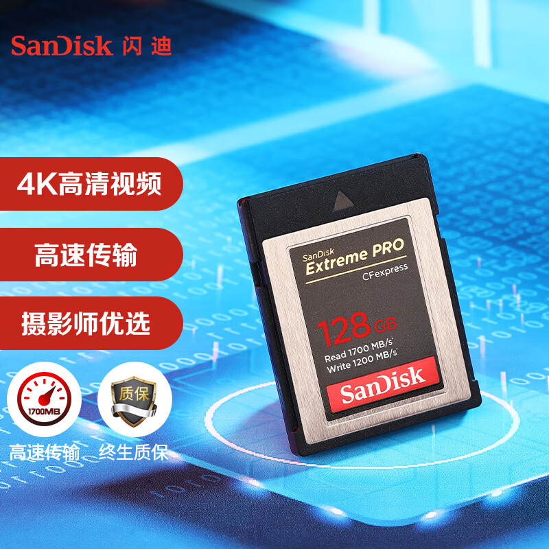 闪迪(SanDisk)128GB CFexpress Type B存储卡 微单高速影像 内存卡 读速1700MB/s 写速1200MB/s 兼容部分XQD相机价格:999.00元!