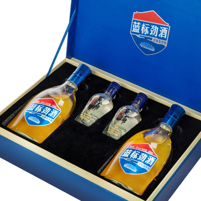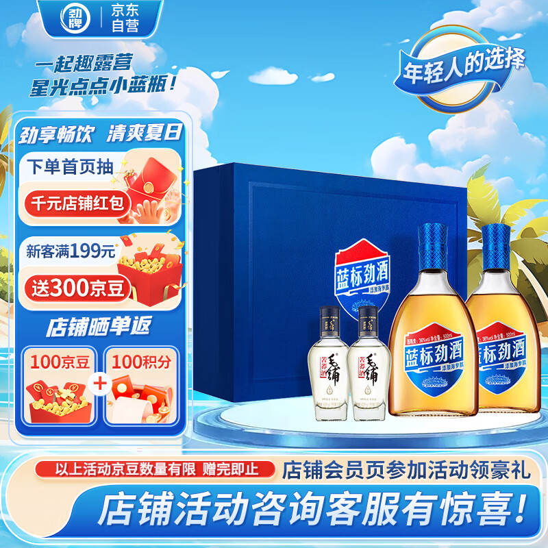劲牌 蓝标劲酒 36度 500ml*2+尊享毛铺小酒100ml*2 精致礼盒 送礼价格:269.00元!