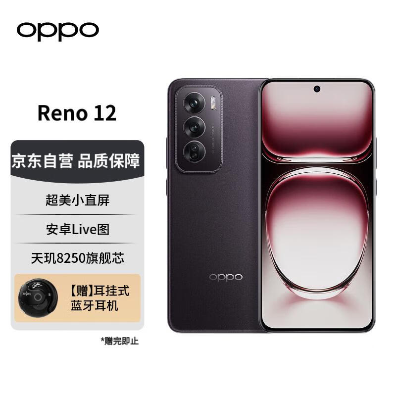 OPPOReno12 超美小直屏 安卓Live图 天玑8250旗舰芯 16GB+256GB 乌木黑 长续航智能拍照【赠蓝牙耳机】价格:2999.00元!