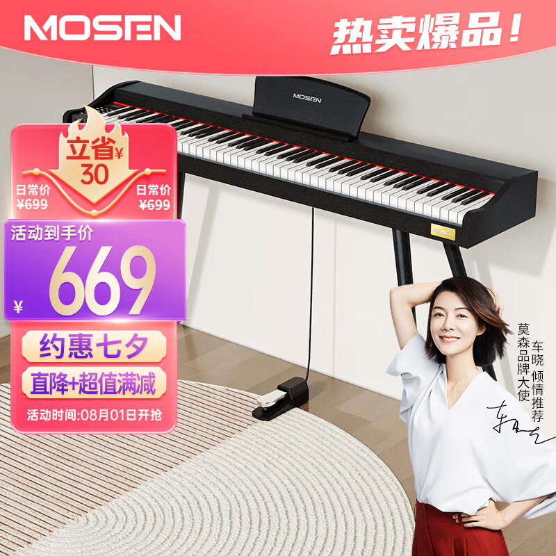 莫森(MOSEN)MS-100S电钢琴青春系列 88键重力度键盘电子数码钢琴 典雅黑+琴架价格:699.00元!