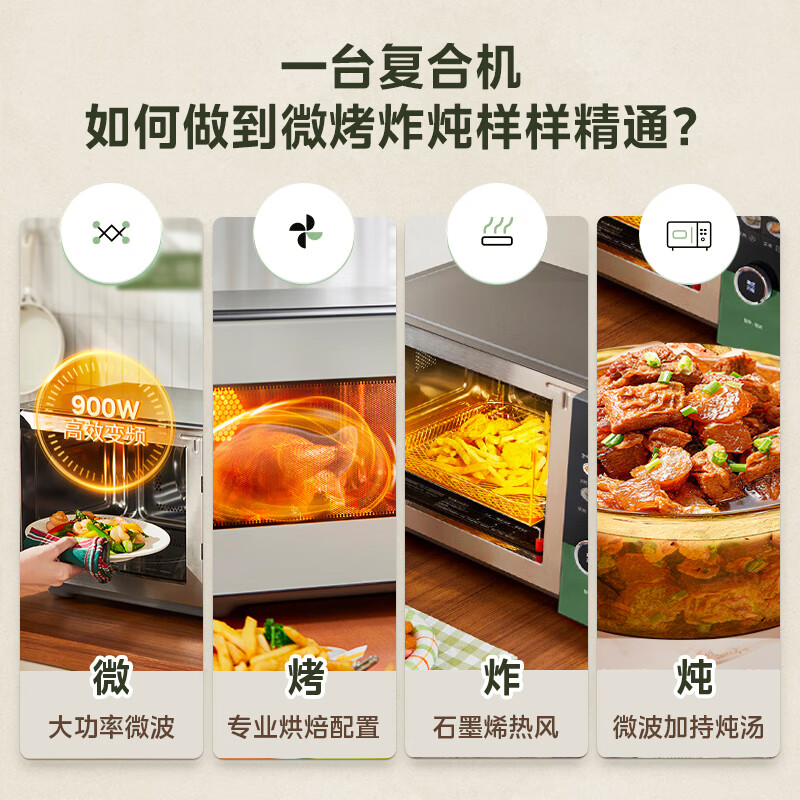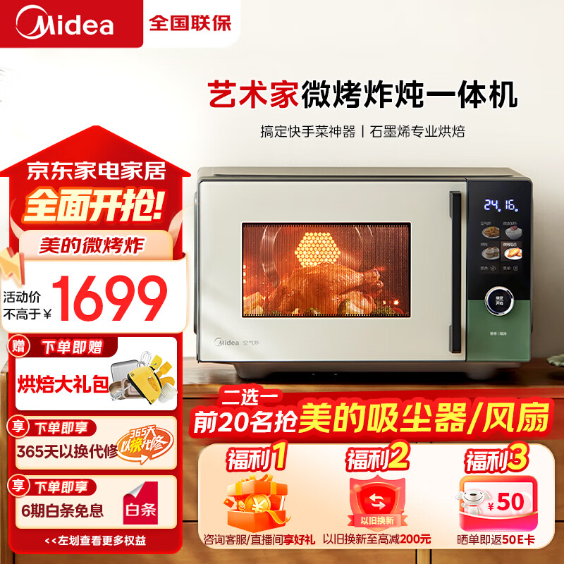 美的(Midea)艺术家微烤炸一体机家用变频微波炉烤箱空气炸智能平板23L容量900W不锈钢内胆石墨烯烤管(C3F6)价格:1699.00元!