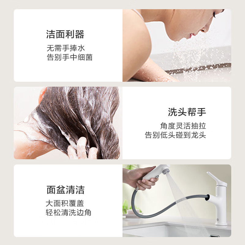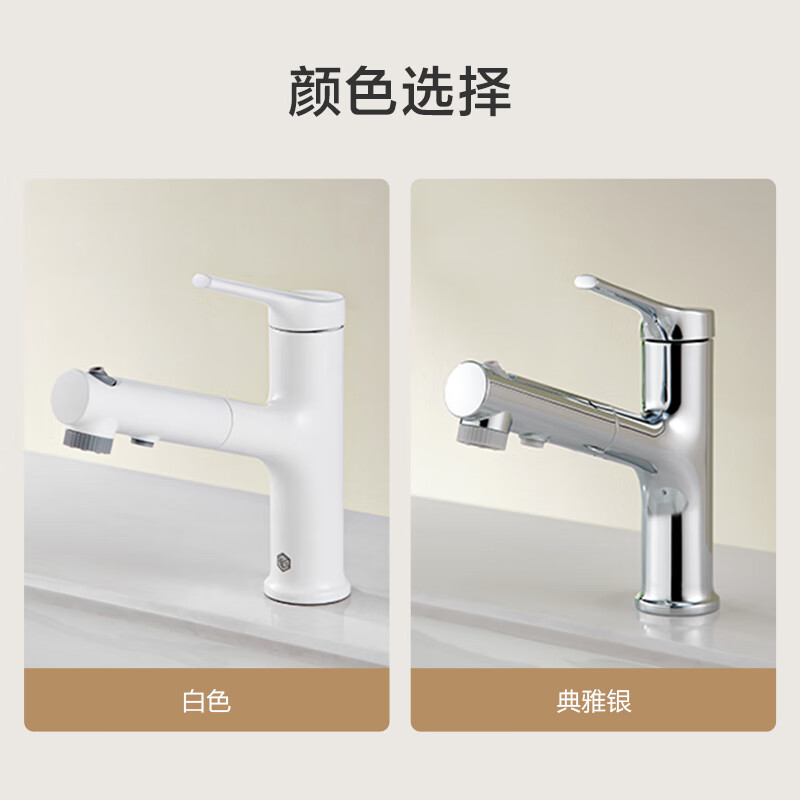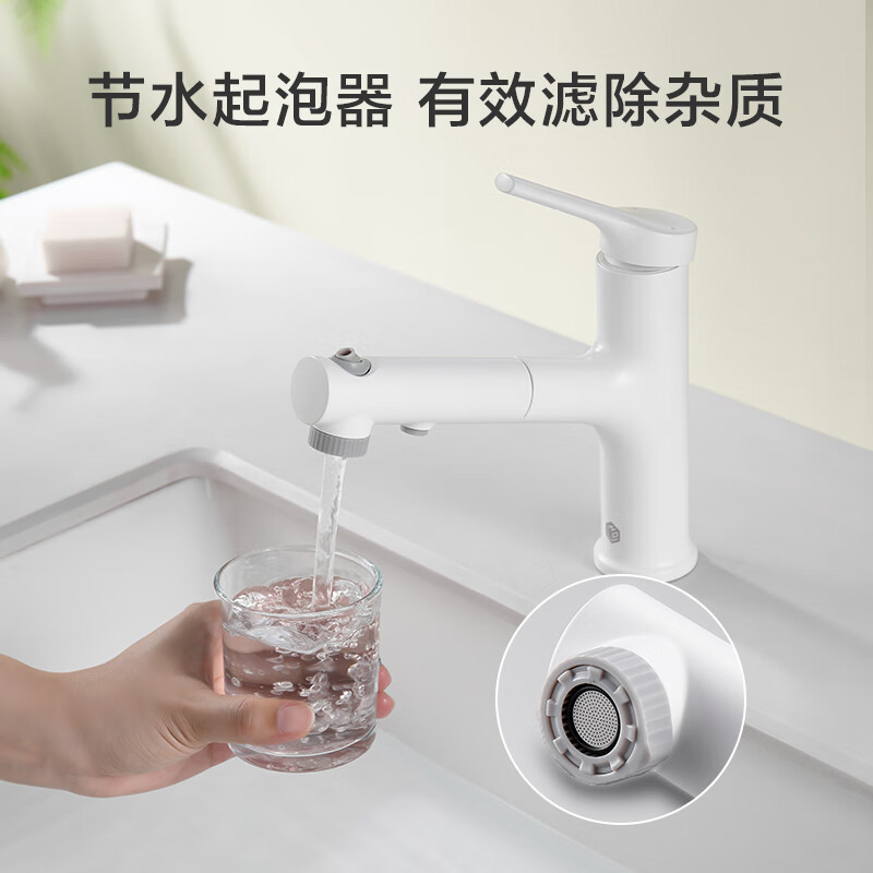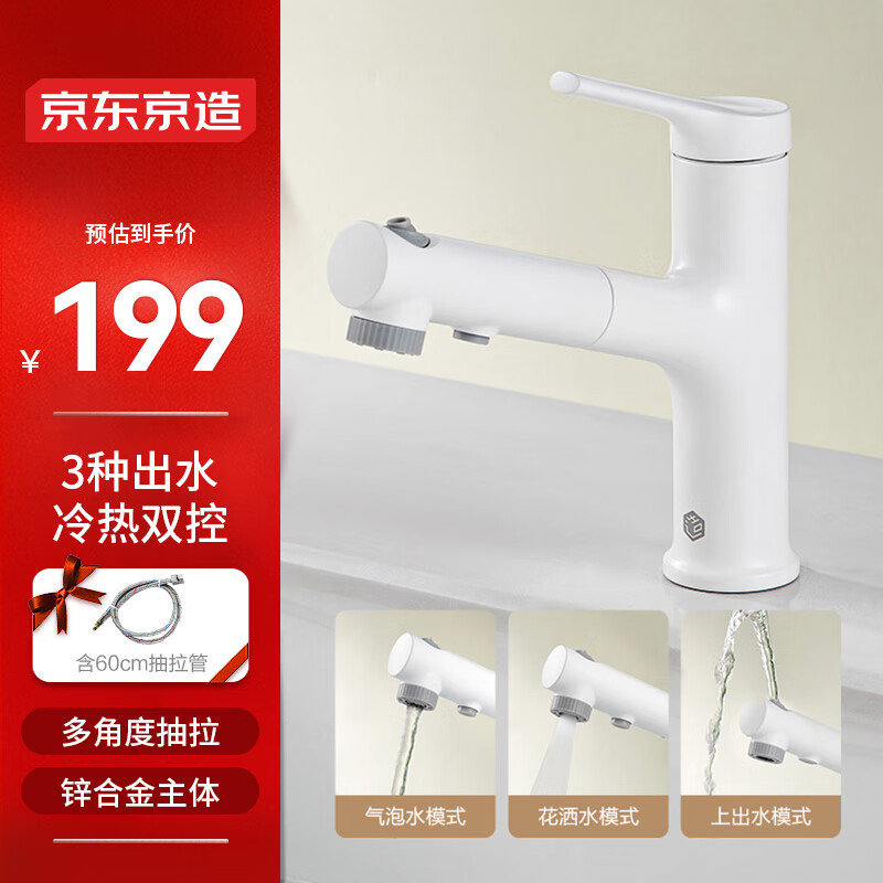 京东京造 浴室面盆抽拉水龙头 3功能冷热双控卫生间台盆漱口 奶油白价格:219.00元!