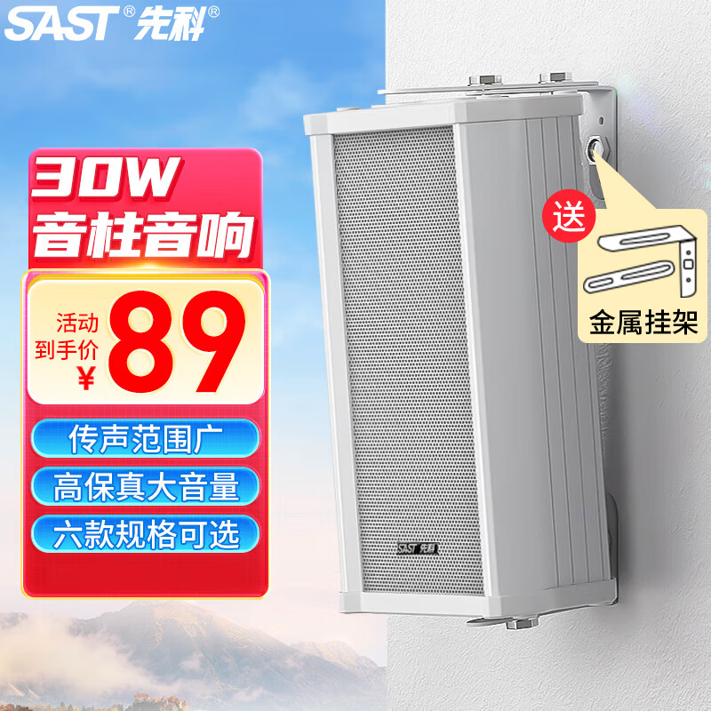 先科(SAST)室外防水音柱音响 户外定压壁挂音响学校广播喇叭 30W价格:89.00元!
