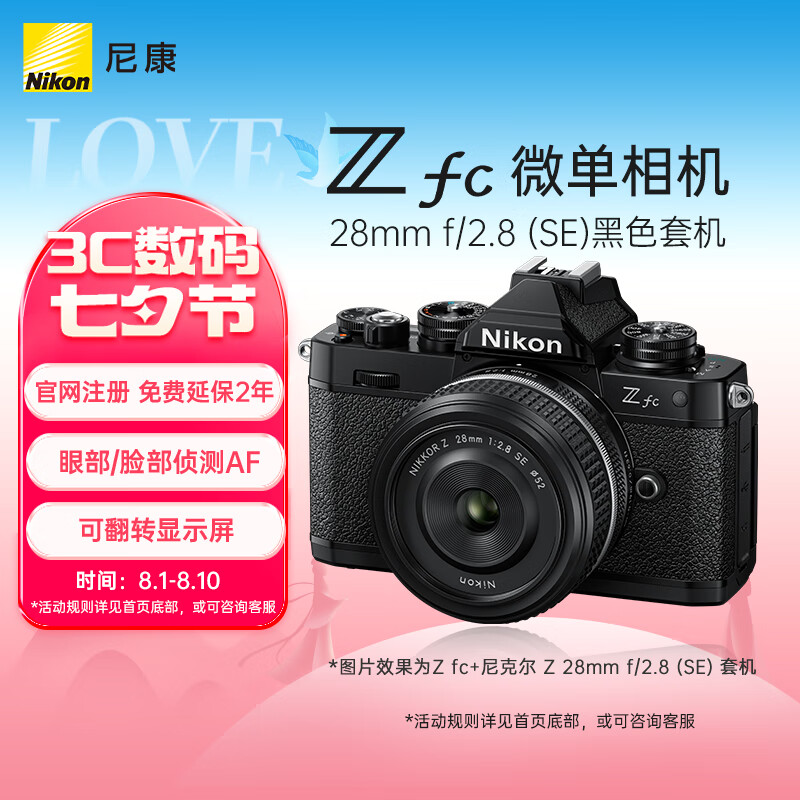 尼康 Nikon Z fc 微单数码相机 黑色套机 (Zfc)微单套机 (Z 28mm f/2.8 (SE) 微单镜头)价格:7399.00元!