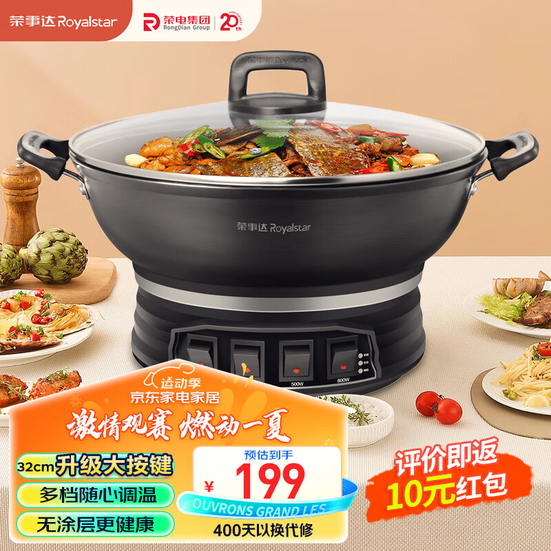 荣事达(Royalstar)电炒锅电蒸锅多功能家用电炒菜炒锅一体式炒锅大功率蒸煮锅电热锅电火锅RDQJ3-32价格:199.00元!