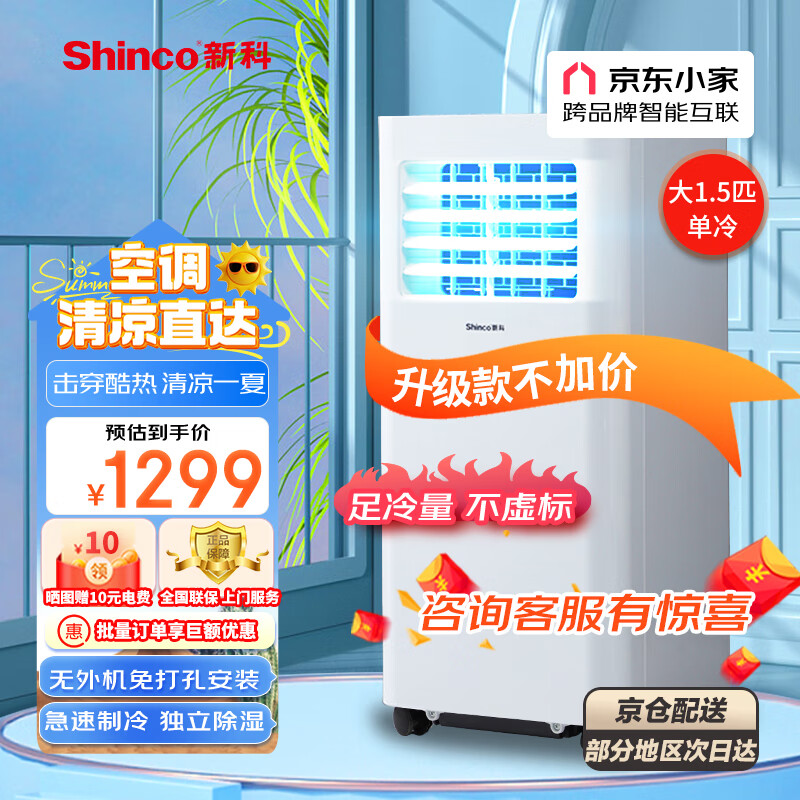 新科(Shinco)移动空调大1.5P 京东小家WIFI控制 家用空调一体机免排水立式免安装出租房小空调KY-35/KW价格:1299.00元!
