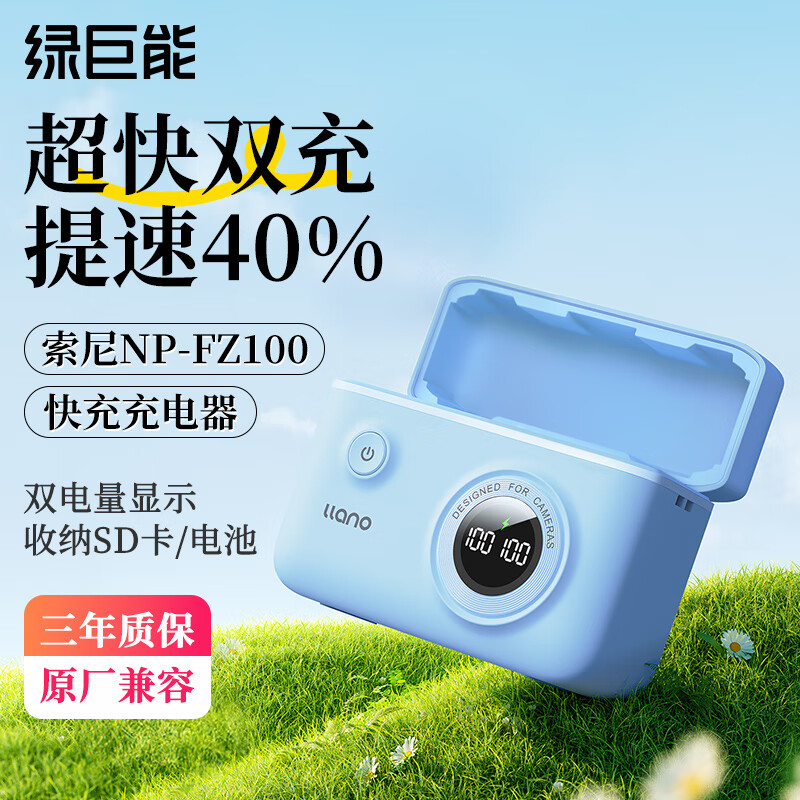 绿巨能(llano)索尼NP-FZ100相机快充盒a7m4电池a7m3/a7c/a7r3/a7r4/a6600微单相机充电仓可收纳双充充电器晨雾蓝价格:229.00元!