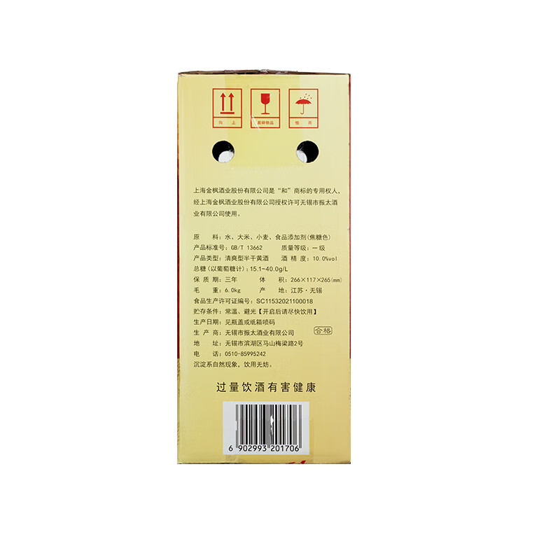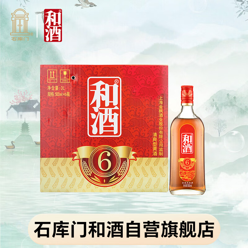 和酒 和六 半干型 上海黄酒 500ml*6瓶 整箱装价格:148.00元!