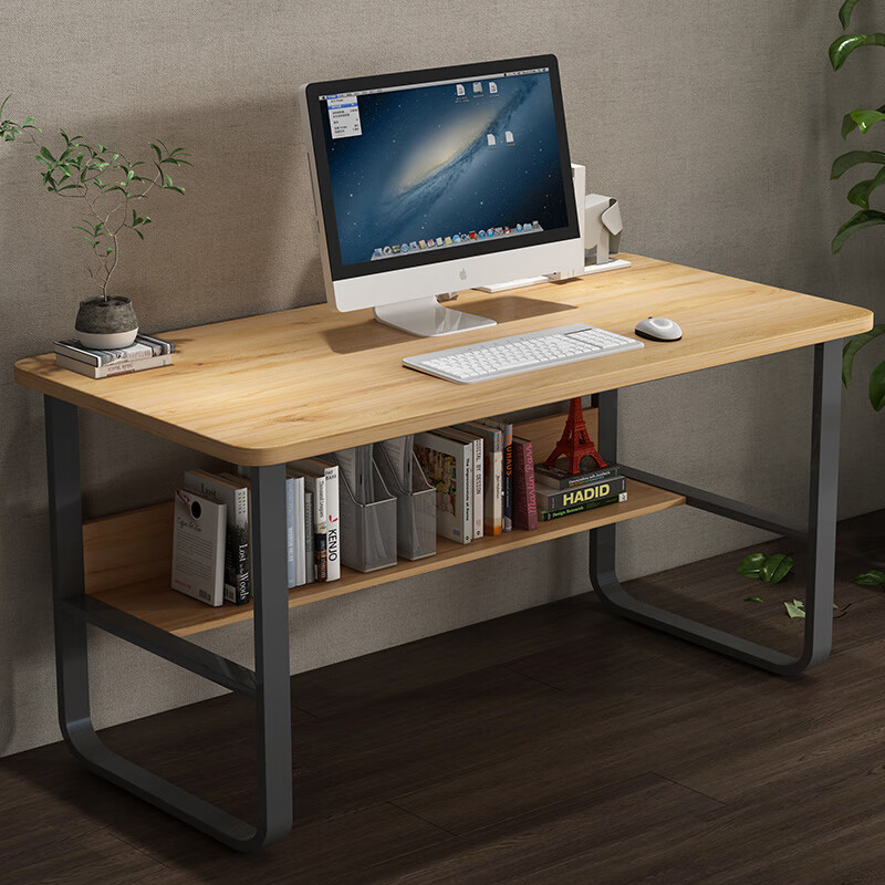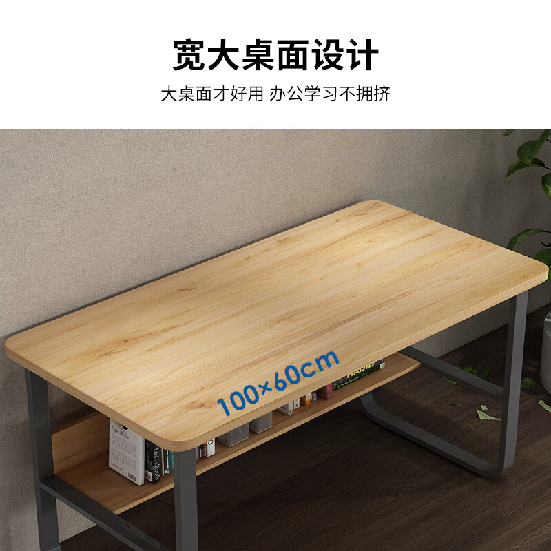 木以成居电脑桌简易书桌办公学习桌双层书架桌子黄梨木色1米LY-41390100YB价格:179.00元!