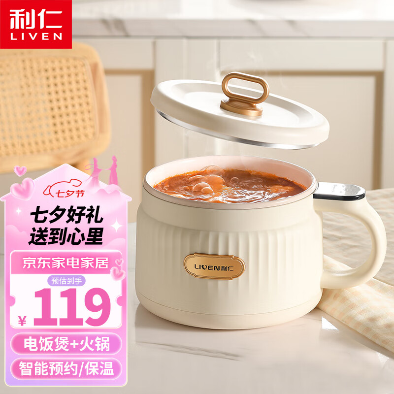 利仁(Liven)电煮锅电火锅小电锅电饭煲宿舍小锅电热锅学生宿舍煮面泡面锅多功能锅多用途锅1.8升 FB-D1880价格:119.00元!