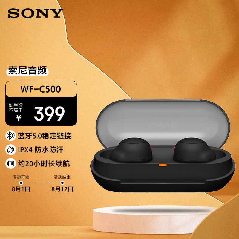 索尼(SONY)WF-C500 真无线蓝牙耳机 IPX4 防水防汗 黑色价格:379.00元!