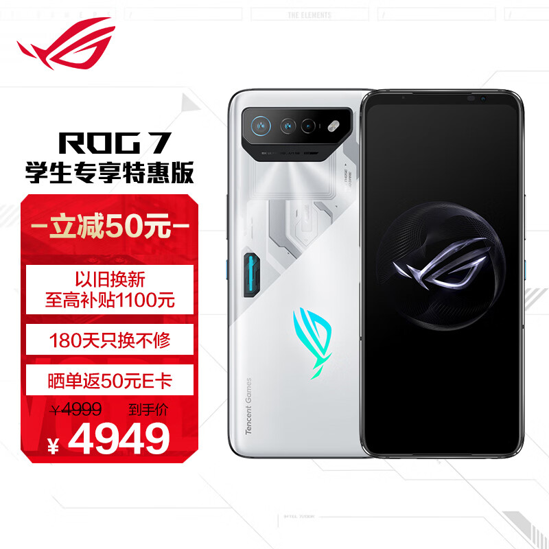 ROG7 游戏手机 12GB+256GB 幻影白 骁龙8 Gen2 5G 矩阵式液冷散热7.0 三星电竞屏 165Hz高刷【学生权益】价格:4999.00元!