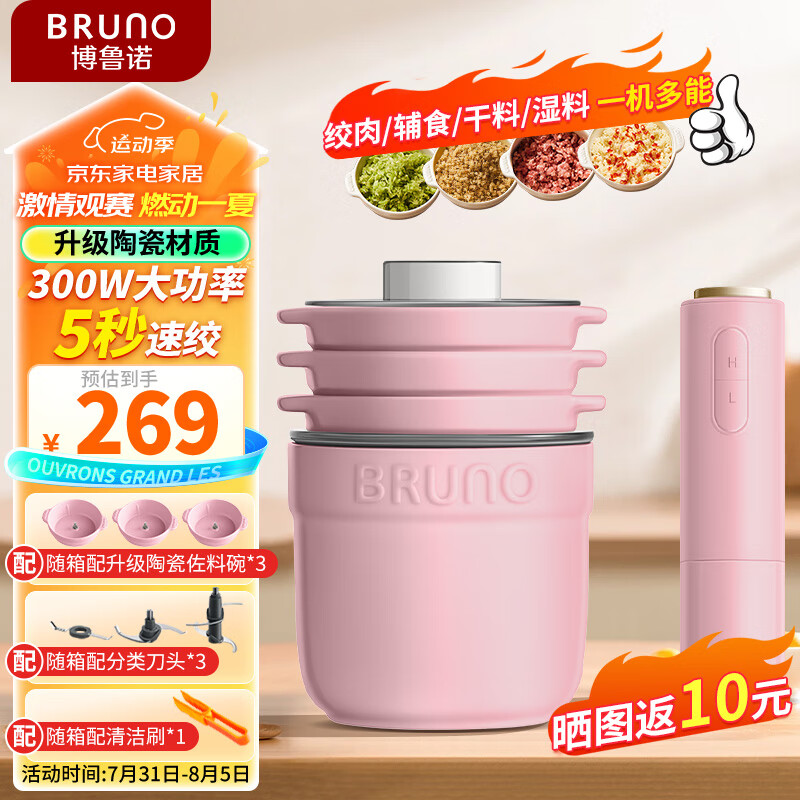 BRUNO绞肉机佐料机家用套娃绞馅机切碎肉菜机电动多功能辅食料理机打蒜【升级陶瓷】豪华款-牛奶紫价格:269.00元!