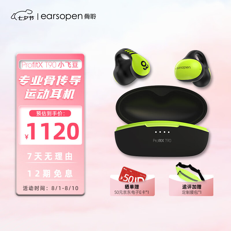 earsopen【七夕礼物】骨聆ProfitX T90小飞豆专业运动骨传导耳机夹耳式无线蓝牙不入耳开放式防水 极光绿价格:1288.00元!