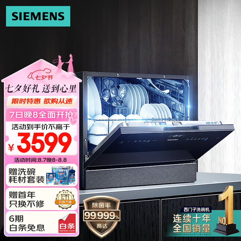 西门子5套嵌入式台式洗碗机 家用 易安装 高温除菌 加强烘干 原装进口 黑色 SK256B88BC价格:3599.00元!