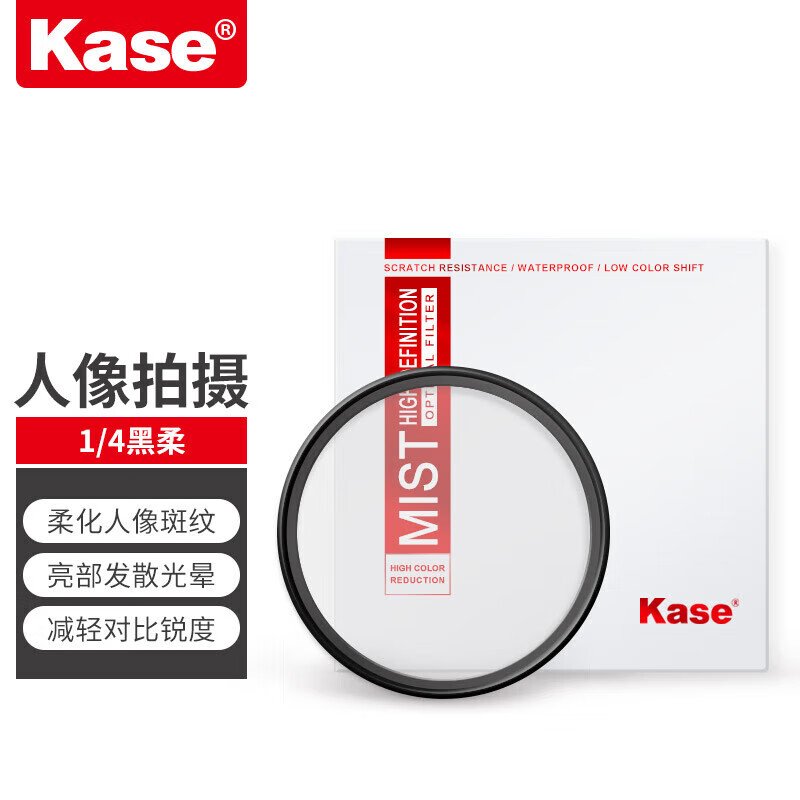 卡色(Kase)螺口黑柔1/4柔光镜 柔焦镜 朦胧镜 微单反相机 人像美颜镜 梦幻创意摄影滤镜 62mm价格:150.00元!