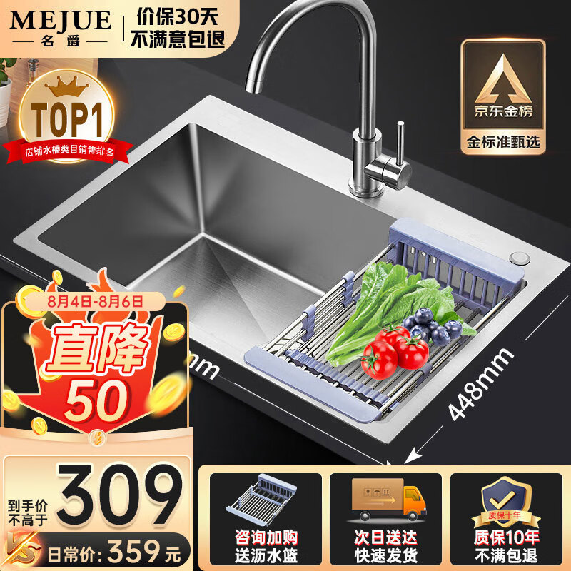 名爵(MEJUE)304不锈钢龙头手工加厚水槽洗碗池 大容量单槽洗菜盆 Z-02458价格:359.00元!