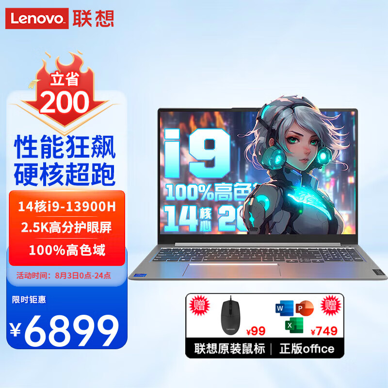 联想(Lenovo)笔记本电脑电掣7 2024满血电竞游戏本16英寸13代标压昭阳高色域设计师学生商务办公手提本 标配i9-13900H 32G 512G(售罄) 背光键盘 指纹识别 2.5K超清屏价格:7099.00元!