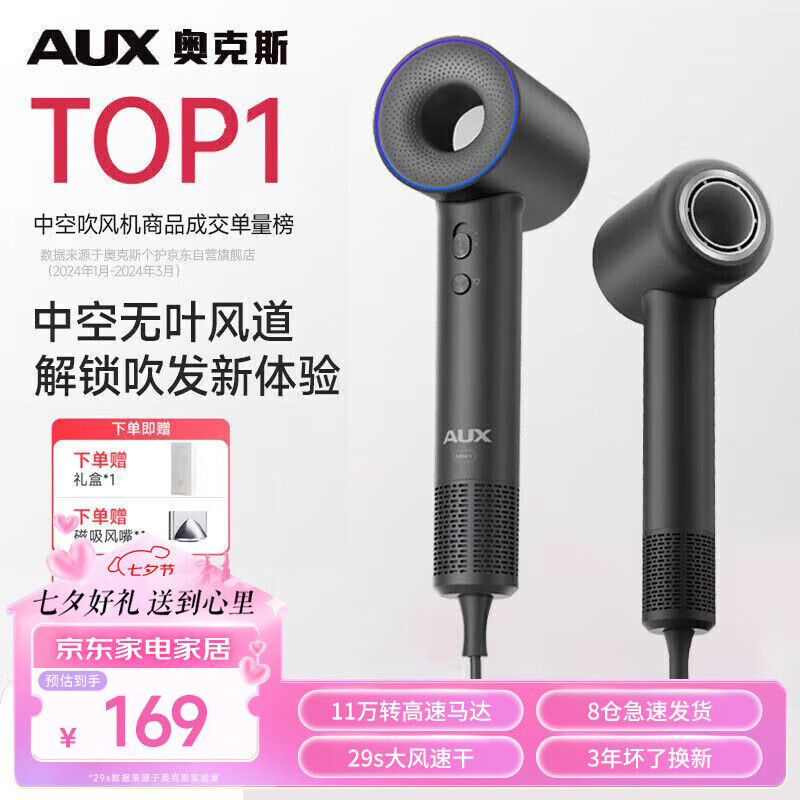 奥克斯(AUX)吹风机高速风筒负离子家用中空无叶电吹风恒温大风力速干护发智能不伤发低噪音 送女友生日礼物价格:309.00元!