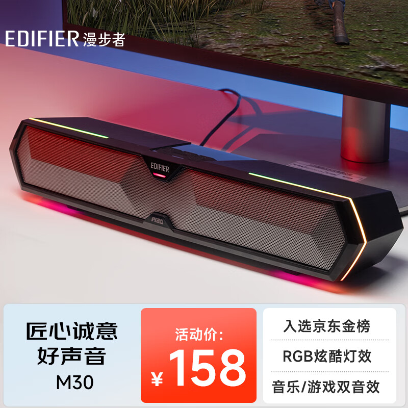 漫步者(EDIFIER)M30 电脑音响音箱 家用桌面台式机笔记本游戏音箱 蓝牙5.3 RGB炫酷灯效 黑色价格:158.00元!