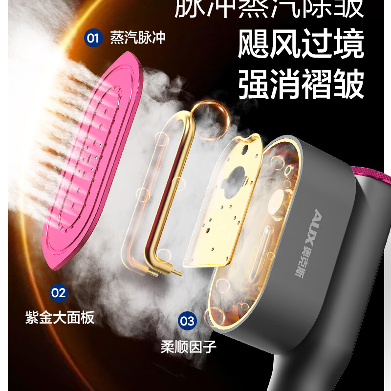 奥克斯手持挂烫机熨烫机家用小型熨斗便携式蒸汽手持电熨斗烫衣服神器ADY-889A 极光红【脉冲大蒸汽+1秒根除褶皱+7档智能温控】价格:239.90元!