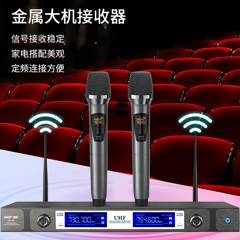 先科(SAST)OK-60无线话筒 一拖二 U段 无线麦克风专业K歌麦克风家庭KTV演唱会议主持专业话筒价格:299.00元!