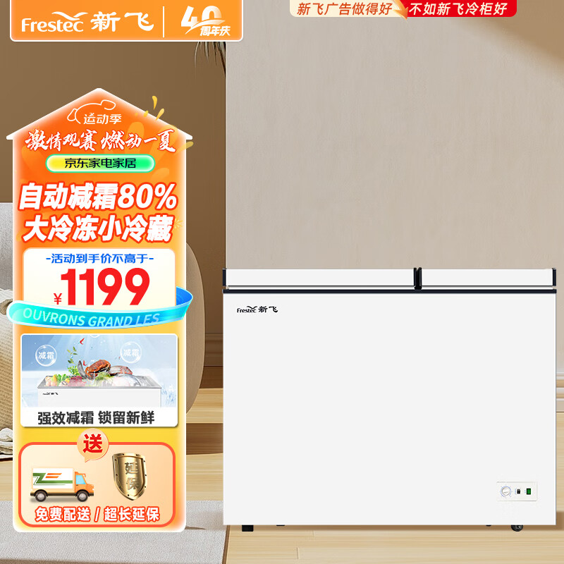 新飞(Frestec)298升减霜双温双箱冰柜 大冷冻小冷藏 卧式冰箱 大容积商用顶开门冷柜 BCD-298KAT价格:1199.00元!