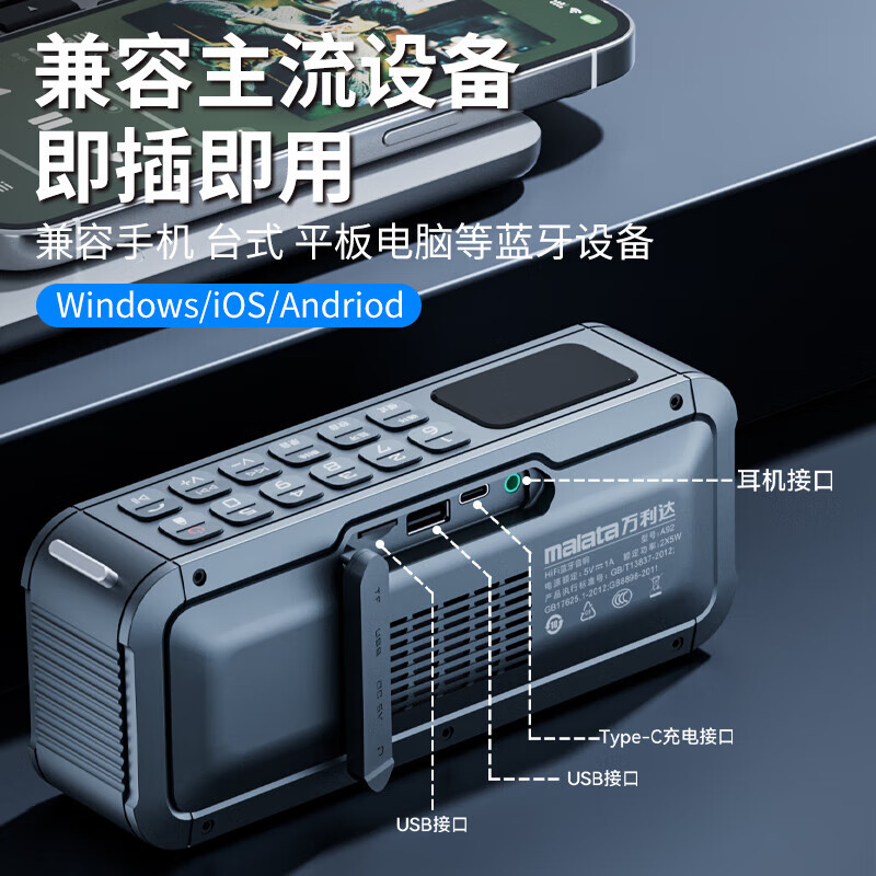 万利达(Malata)A92HiFi便携式插卡U盘随身听听书机户外无线充电音箱迷你FM广播半导体送老人收音机灰黑色价格:225.00元!