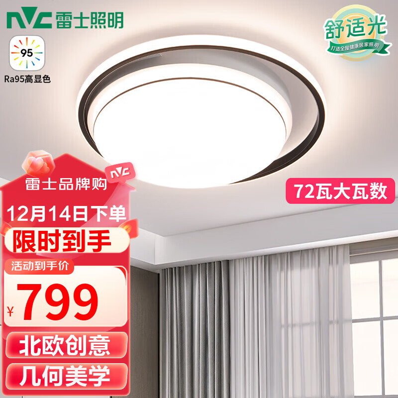 雷士(NVC)吸顶灯后现代创意灯具温馨卧室灯Ra95智控-大尺寸悠然圆灯价格:815.00元!