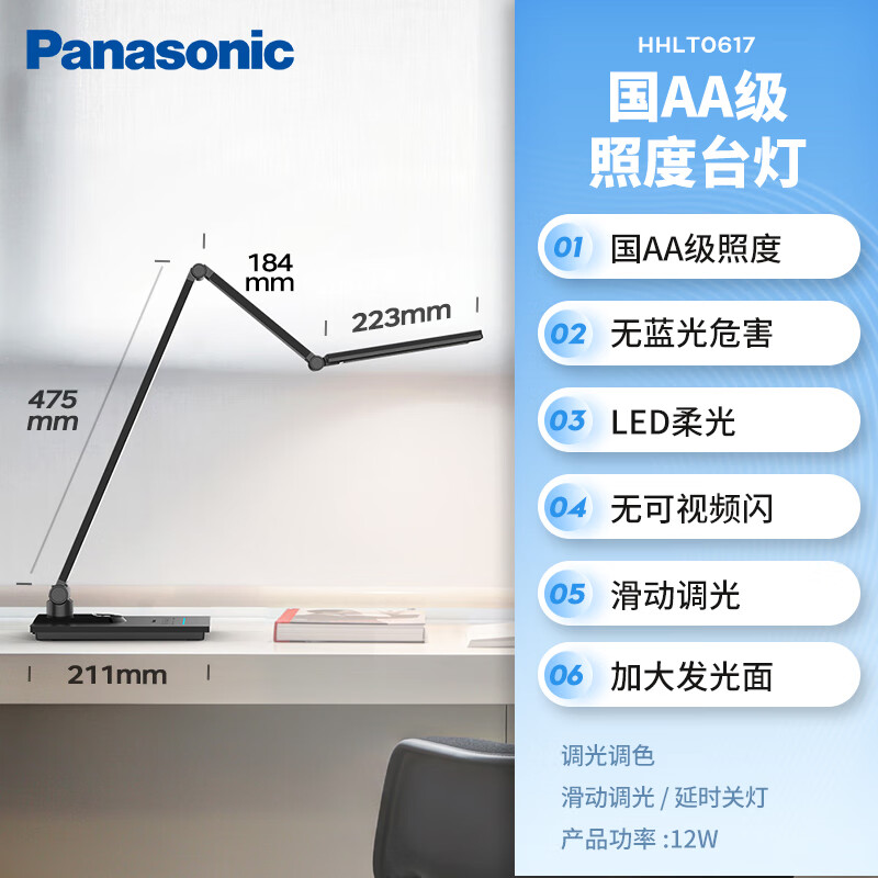 松下(Panasonic)国AA级减蓝光护眼台灯儿童学生学习阅读工作智能调光调色应急台灯价格:470.00元!