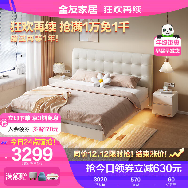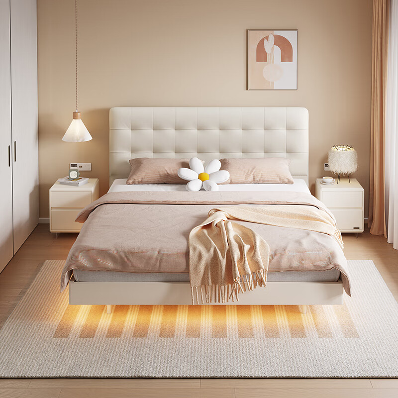 全友家居?床奶油风悬浮床双人床国民家居卧室欧皮软包家用皮床价格:3929.00元!