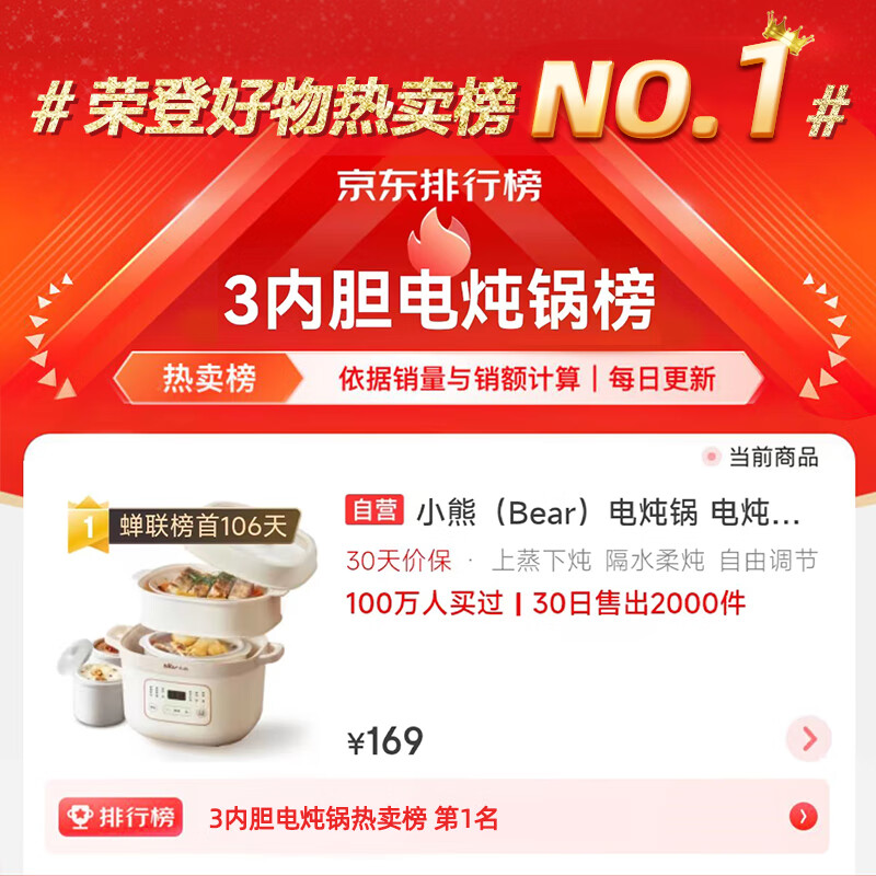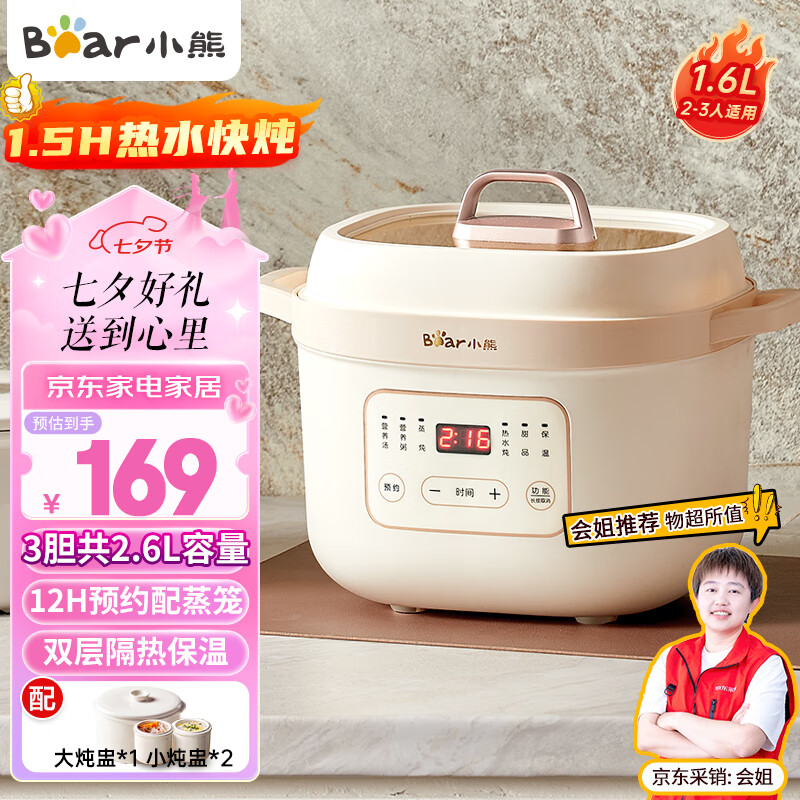 小熊(Bear)电炖锅 电炖盅 隔水炖锅 煲汤锅 炖汤盅 蒸锅 婴儿辅食锅煮粥锅燕窝可预约带蒸笼DDZ-D16C1 1.6L价格:169.00元!