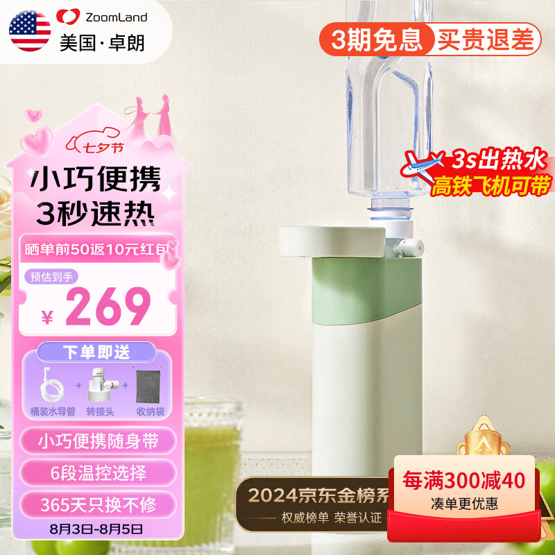 卓朗即热式饮水机便携式烧水壶 小型桌面迷你出差旅行便携饮水机家用小型桶装水抽水器 F-2019G价格:269.00元!