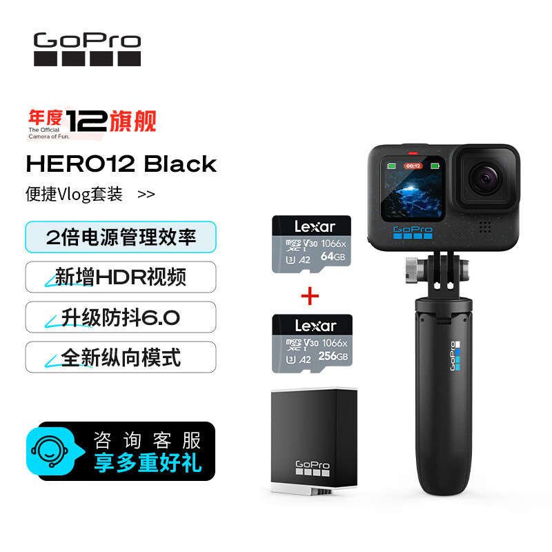 GoPro12 运动相机 户外摩托骑行防抖 水下潜水防水 滑雪照相机 vlog便携套装加256G存储卡套组价格:4027.00元!