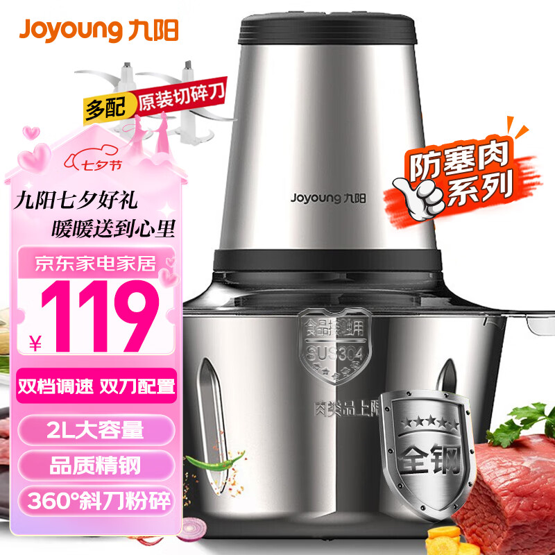 九阳(Joyoung)绞肉机家用双刀电动多功能料理机搅拌婴儿辅食机切菜绞馅 全钢碎肉机S18-LA527价格:119.00元!