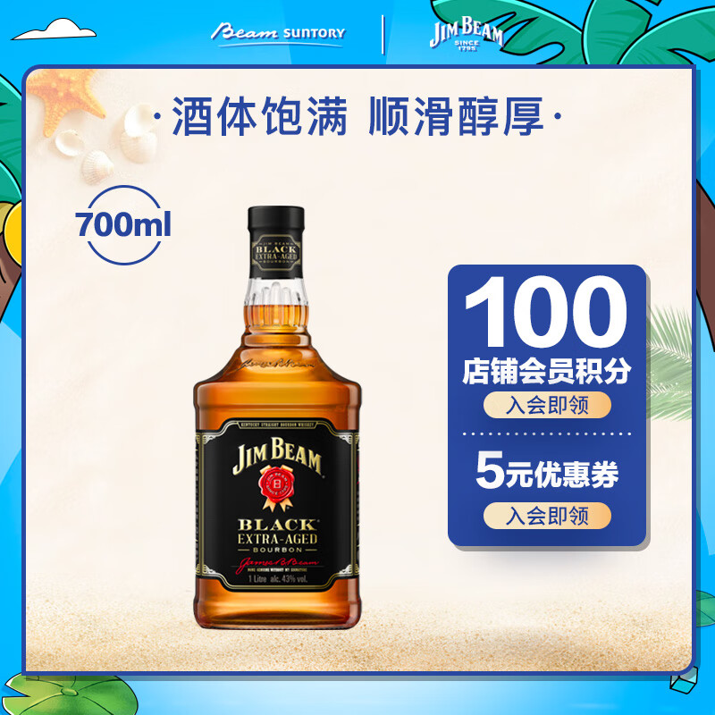金宾(Jim Beam)波本 威士忌 黑牌 调和型 洋酒 700ml价格:119.00元!
