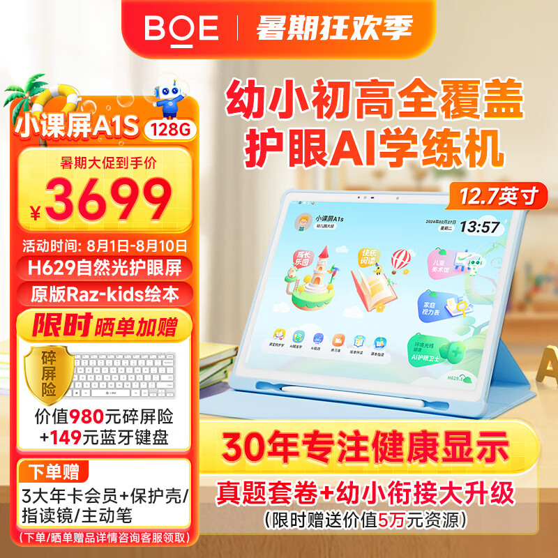 BOE京东方小课屏A1S 128G类纸护眼屏儿童平板网课AI学习机小学生幼儿小初中高中课本同步家教平板RAZ价格:3699.00元!