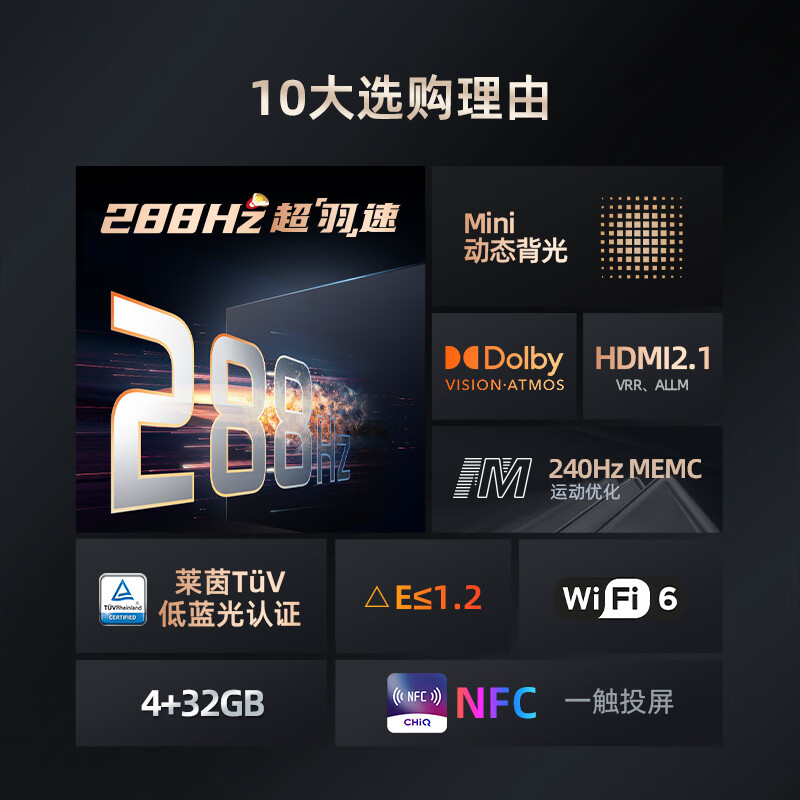 电视类型:智能电视,适老电视,MiniLED,电视音响套装,游戏电视