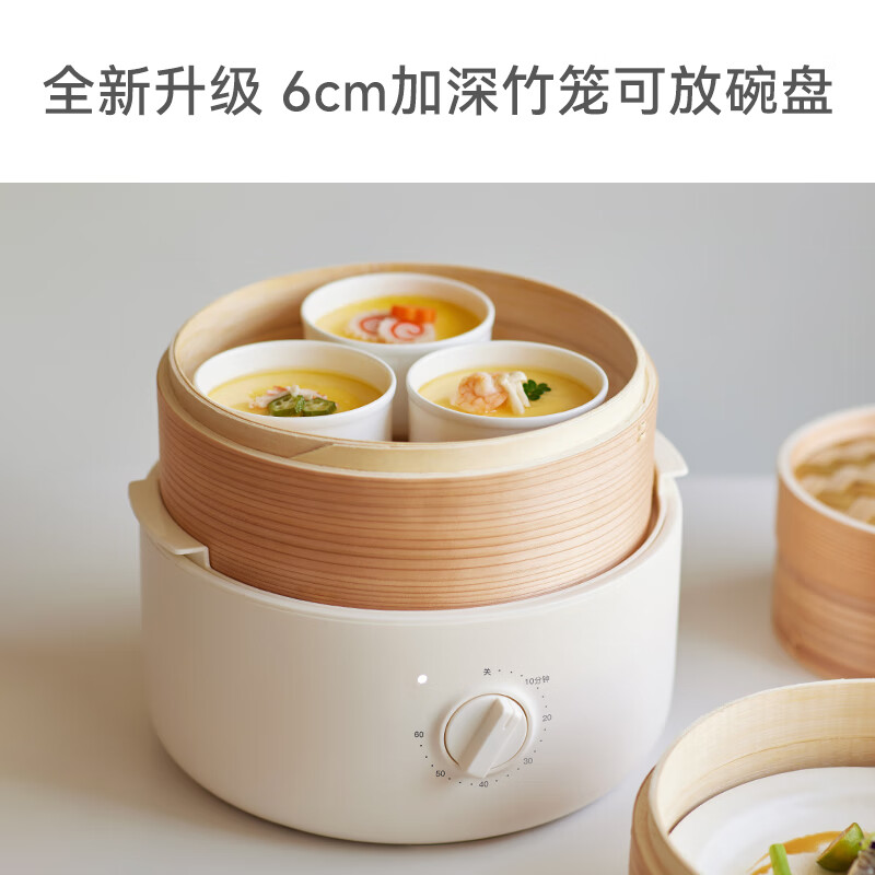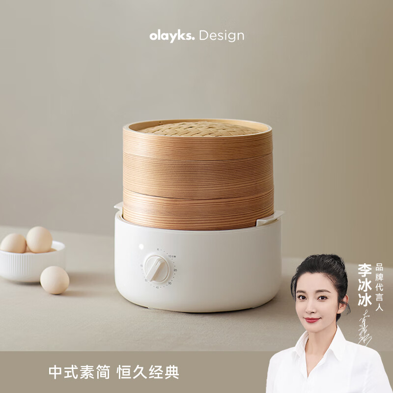 olayks立时 电蒸锅 小型竹木蒸笼蒸锅 早餐机竹笼多功能锅 竹蒸笼蒸锅家用速热馒头包子 2层价格:279.00元!