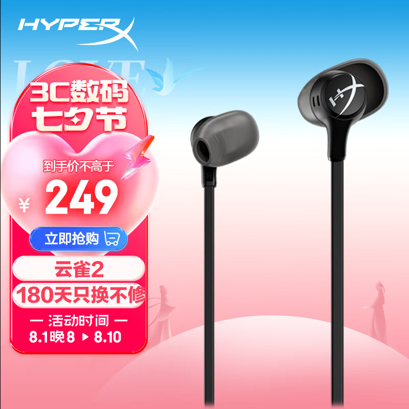 极度未知(HYPERX)CloudEarbudsII云雀2黑色游戏耳机入耳式通用带麦游戏入耳耳机面条线价格:249.00元!