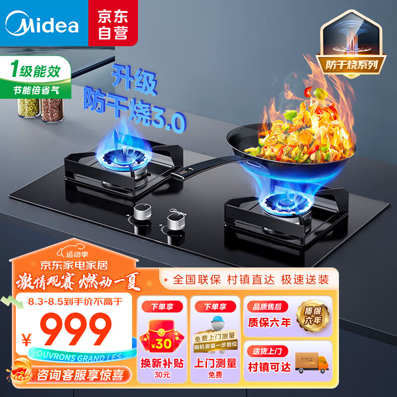 美的燃气灶天然气 双灶 铜火盖 5.0kW大火力灶具 家用台嵌两用 防干烧灶具 Q230S-M价格:999.00元!
