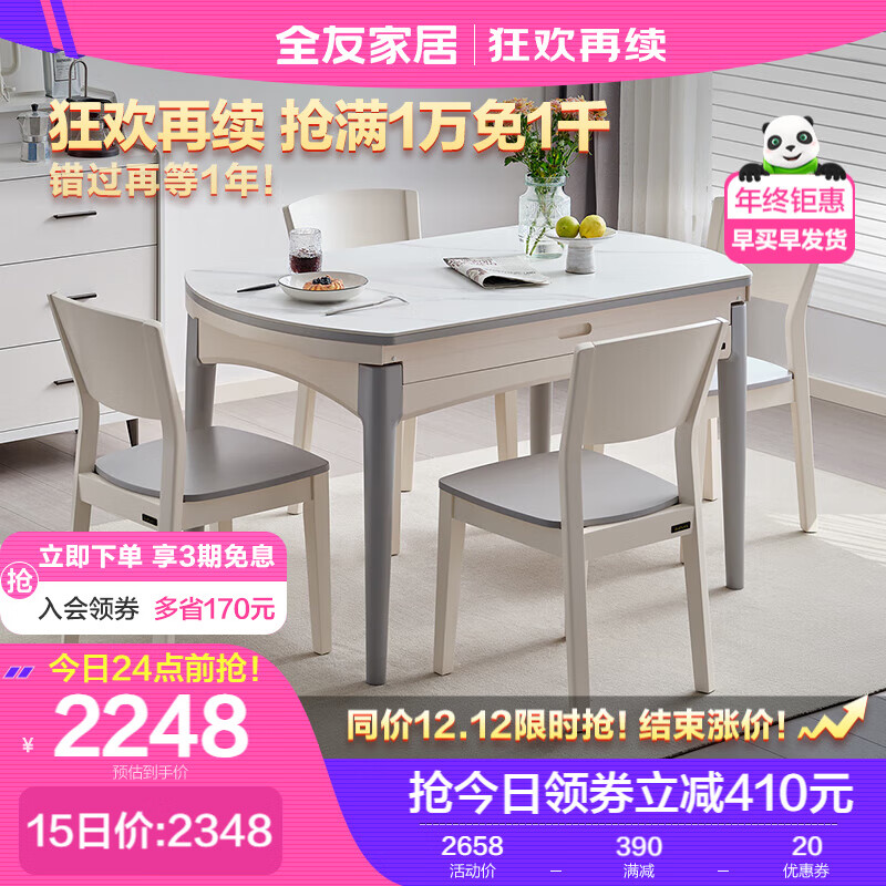 全友家居 餐桌椅 现代简约实木框架餐桌椅可伸缩折叠岩板餐桌DW1028K价格:2658.00元!
