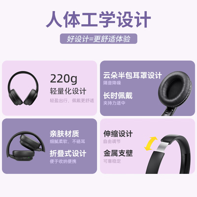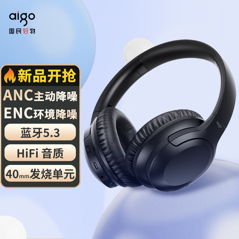 爱国者(aigo) WY100 头戴式无线蓝牙耳机 降噪耳机 蓝牙5.3 音乐运动游戏耳机 手机通用(黑色)价格:129.00元!